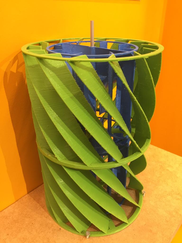 De buitenkant van de korf is stationair en bestaat uit licht gedraaide lamellen. Wanneer daar wind tegenaan blaast, ontstaat er een werveling binnenin, die de rechtopstaande lamellen van de molen in beweging brengt. Dit is altijd in dezelfde richting. De lamellen zijn verbonden met een verticale stalen pin, die in een draaiende beweging wordt gebracht. Daarmee kan dan bijvoorbeeld een dynamo worden aangedreven.